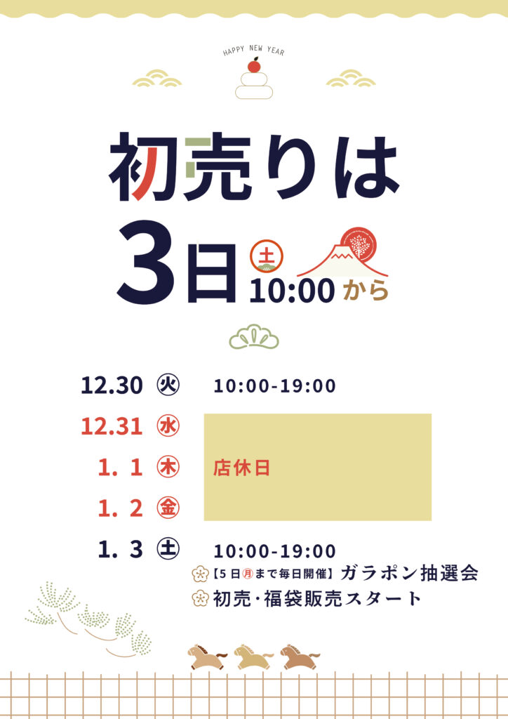 年末年始 | 営業日のお知らせ